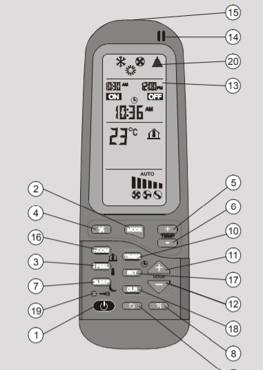 כאשר נלחץ על כפתור זה השלט יאפשר למשתמש להתאים את הטמפרטורה והוא גם ישלח אות למזגן אשר יהיה מסוגל לשמור על טמפרטורה זו.