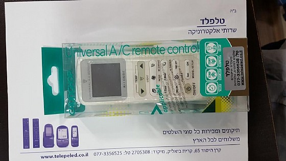 שלט אוניברסלי חדיש כולל תאורת לד מותאם במיוחד למזגנים הנמכרים בישראל שיטה חדשנית ללא צורך בקידוד