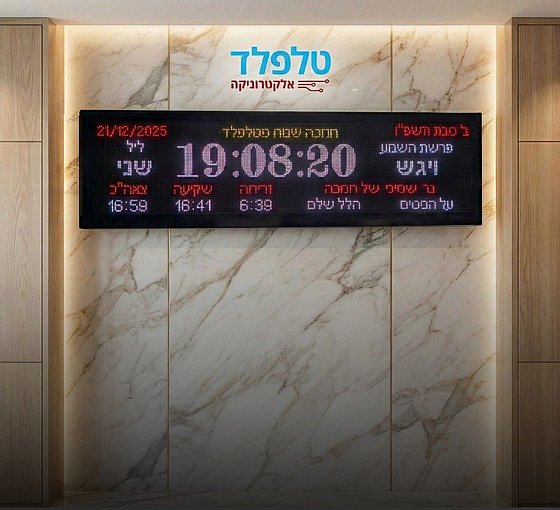 שעון קיר דיגיטלי יהודי מקצועי המציג תאריך עברי ולועזי, יום בשבוע, זמני תפילה וזמני שבת, מתאים לבית כנסת, חדר שיעורים, בית ומשרד.מכוון לפי לוח "אור החיים", לא דורש חיבור לאינטרנט, מציג מידע לפי מנהגים (ספרדי, אשכנזי, חב״ד, תימן ועוד) תרשמו לנו טקס להקדשה לעילוי נשמה, או כל דבר אחר בו אתם מעוניינים ונדאג להכניס עבורכם לשעון , ניתן לבחור מספר טקסטים מתחלפים, רשמו זאת בהערות הזמנה .